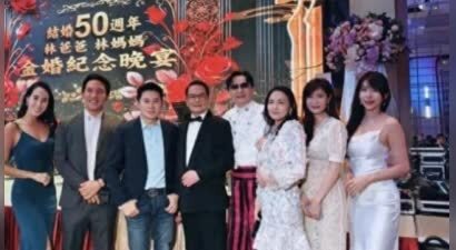 林心如为父母办金婚,74岁妈妈超年轻贵气,霍建华穿T恤太随意