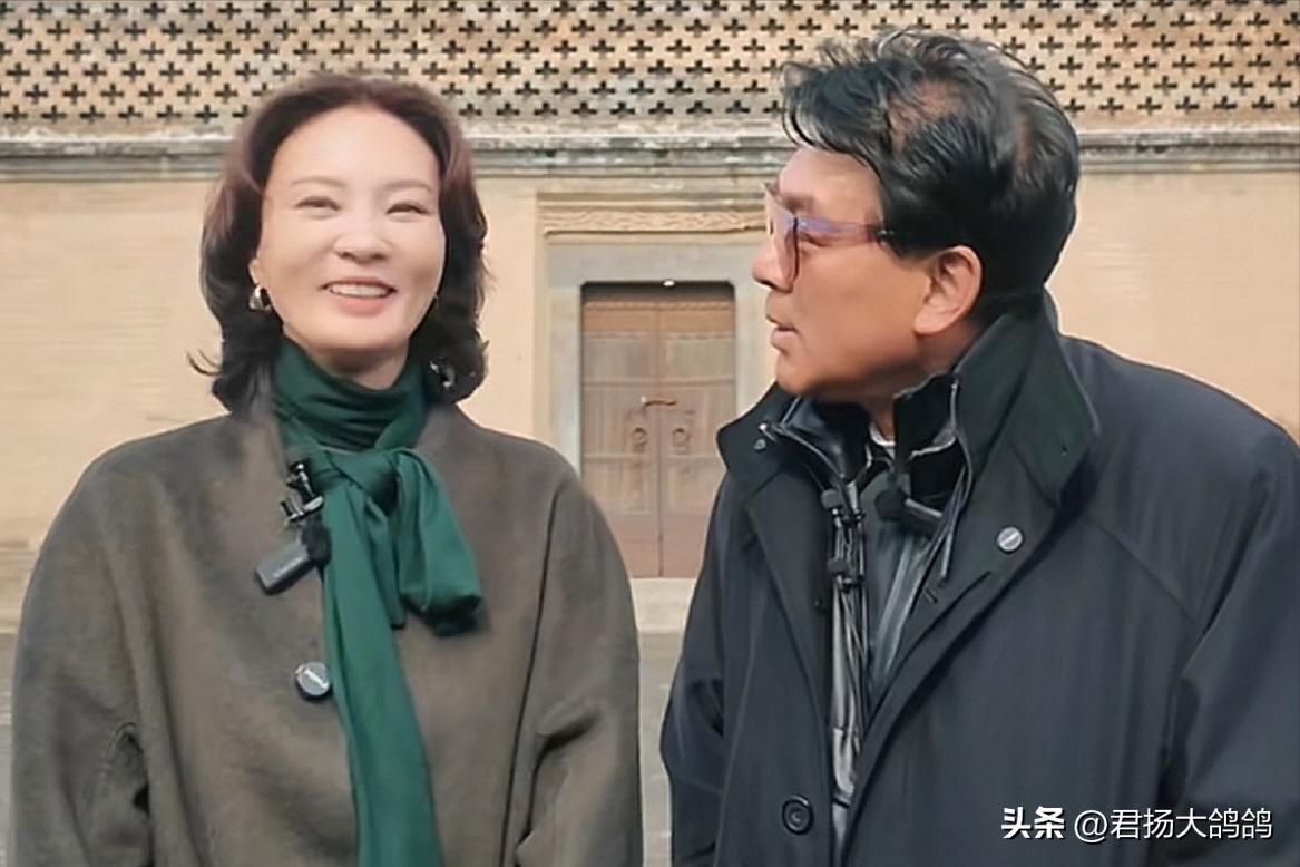 后面朱时茂就跟着刘芳菲去参观了运城后土祠,虽然现场的风十分强劲,
