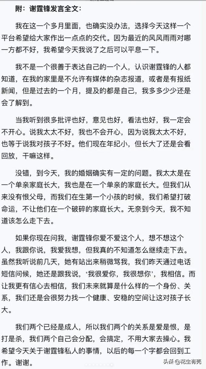 面对众人质疑,谢霆锋发布长文诉说心声,字里行间,任谁看了都是一出独属于他们二人的“恨海情天”。