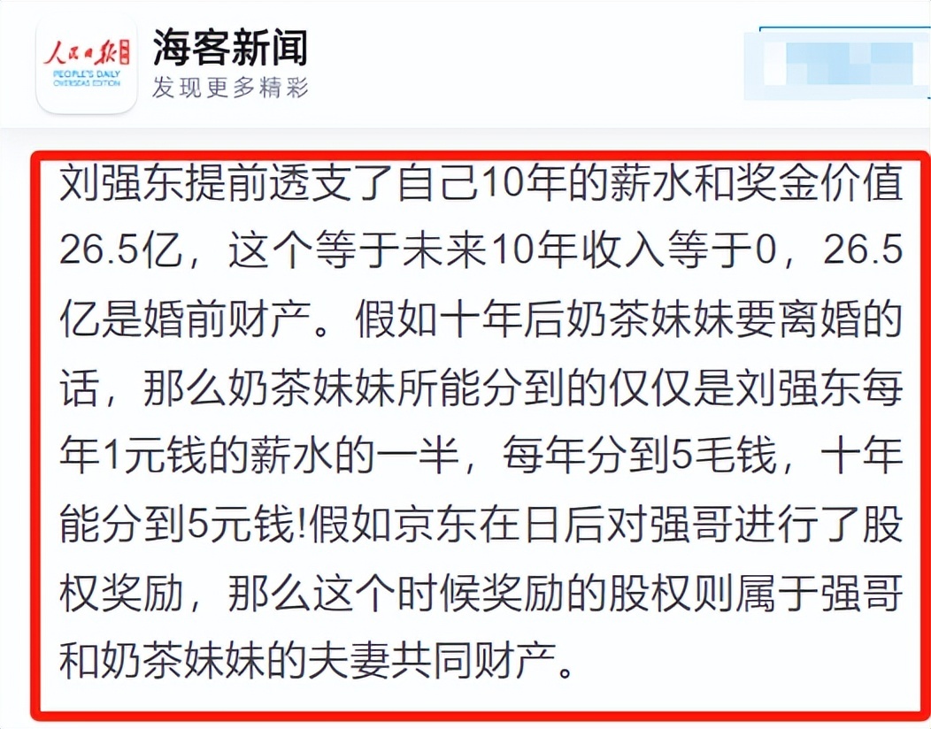 可鲜少有人知道,婚前刘强东已预支萨十年薪资完成财产隔离。