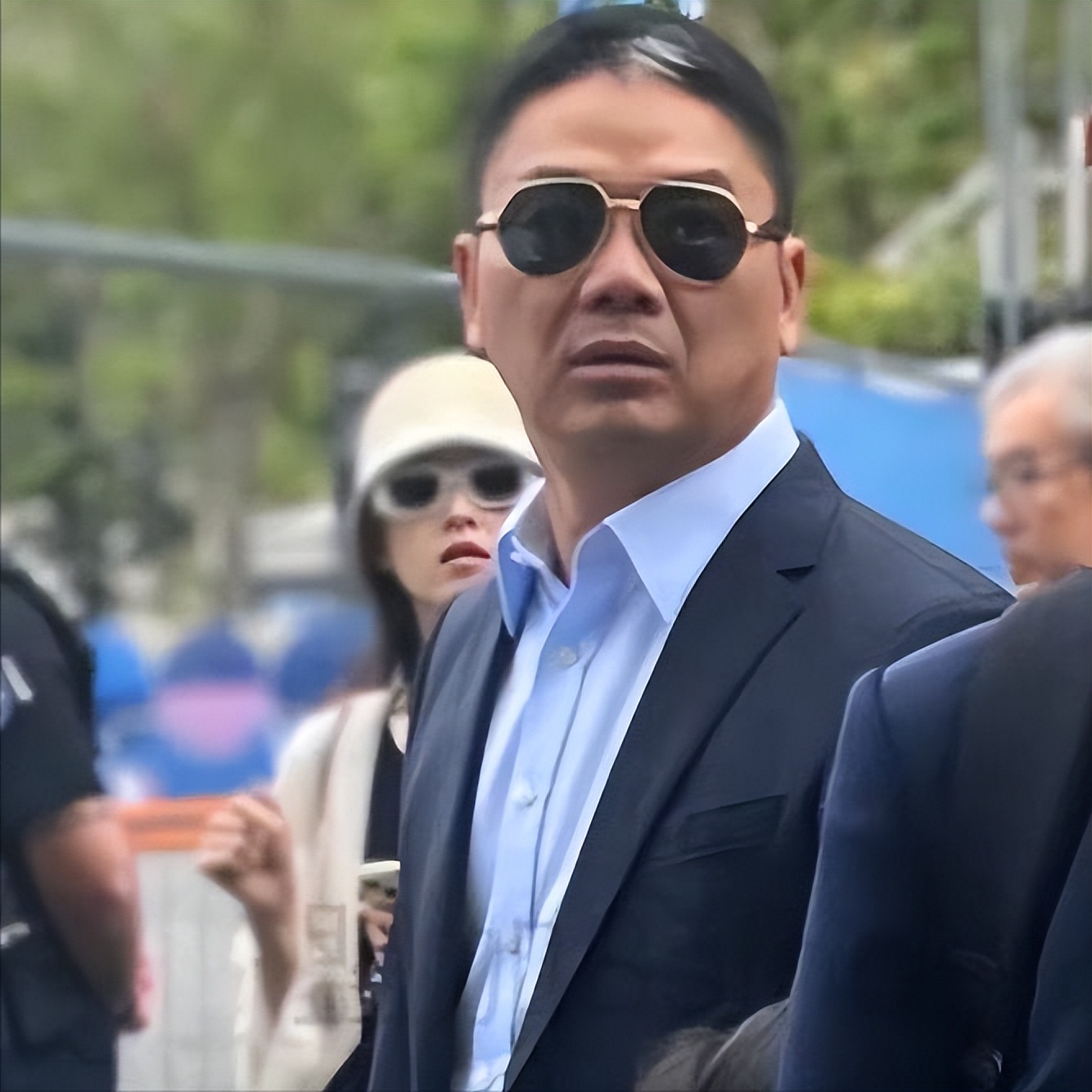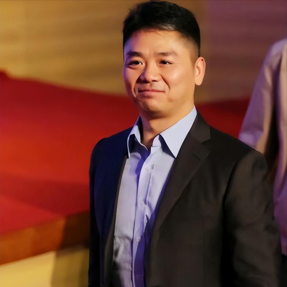 50岁的刘强东身着经典黑西装,鬓角的白发比以往更显眼。