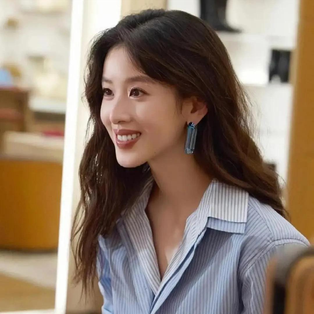 去掉厚重刘海的微黄长卷发透着成熟韵味,浑身都散发着迷人的气质。