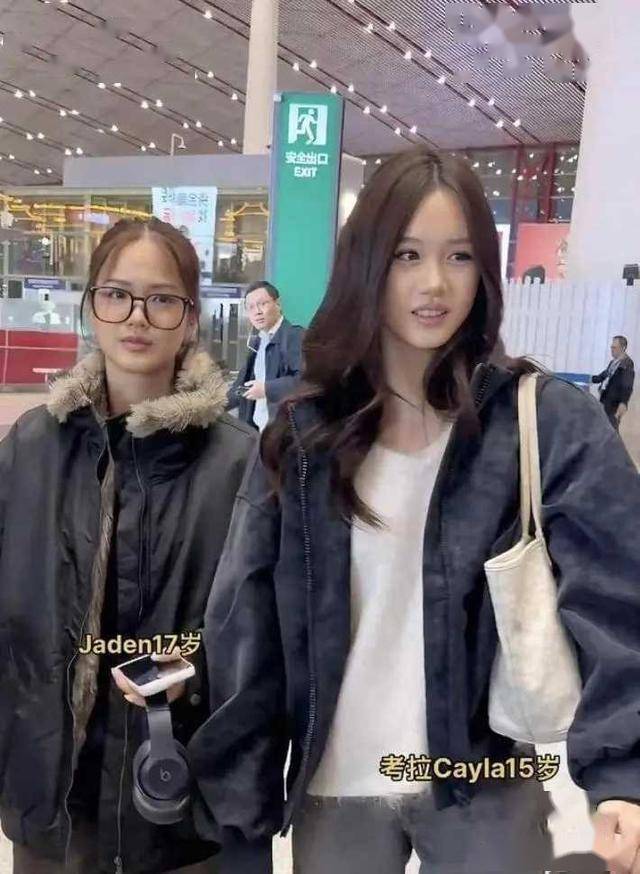 钟丽缇两女儿同框机场:15岁考拉身高超170,姐妹同框谁更吸睛?