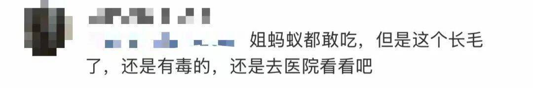 评论区网友神补刀:“姐连蚂蚁都敢吃,但这长毛的蘑菇酱是真有毒啊!建议姐还是赶紧去医院看看吧!”