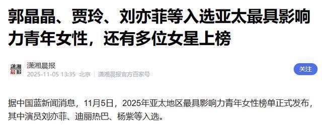她成功入选亚太地区最具影响力青年女性榜单,网友纷纷留言“凭硬实力当选,和豪门身份无关”。
