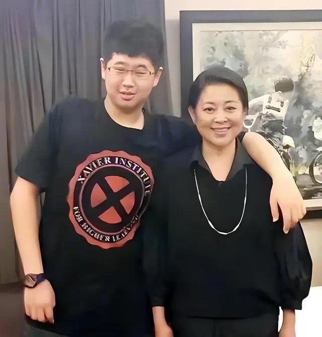 倪萍站在儿子面前,比他矮一头,她要抬头才能看见儿子的脸。
