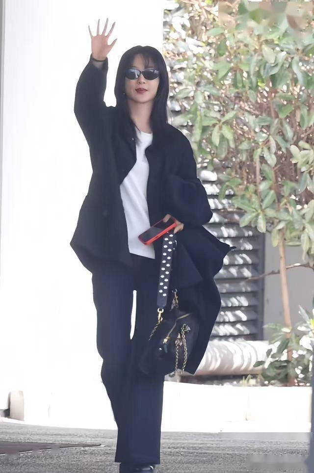 照片里她穿着一身黑衣白内搭,戴着棒球帽和墨镜,整体造型挺有气质的,但那张脸真的变化好大。