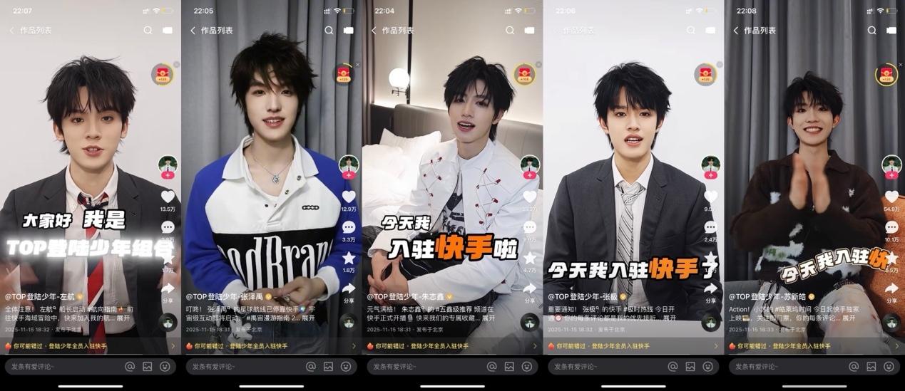 人气男团TOP登陆少年组合成员单人账号正式入驻快手,首条视频引爆粉丝狂欢