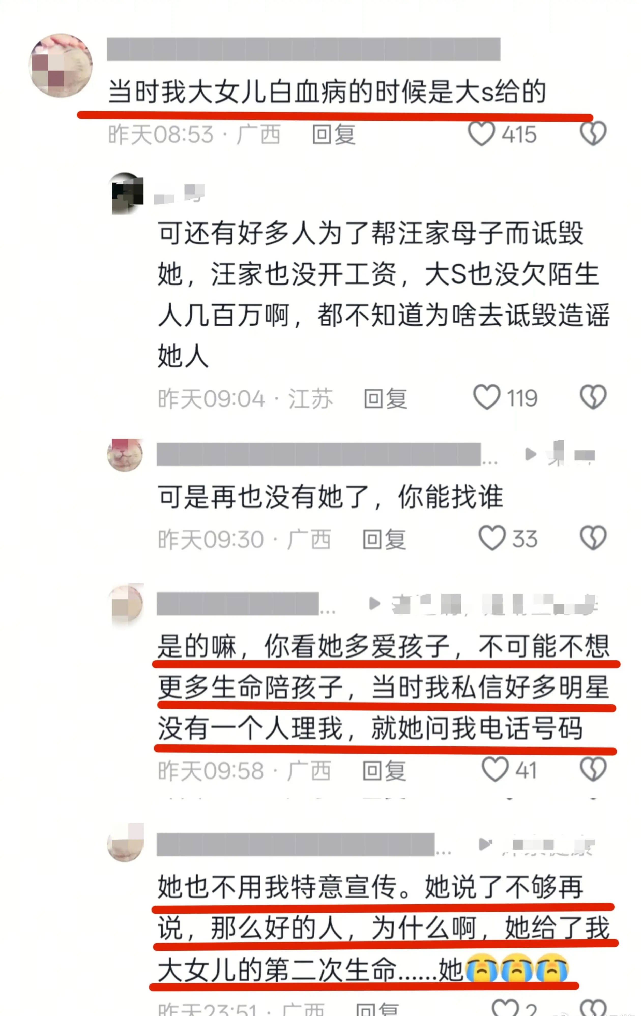 一名网友近日在社交媒体平台发文透露,女儿患上白血病后,自己曾通过微博私信向多位明星寻求帮助,唯独大S主动询问联系方式,核实情况后第一时间转账30万元医疗费。