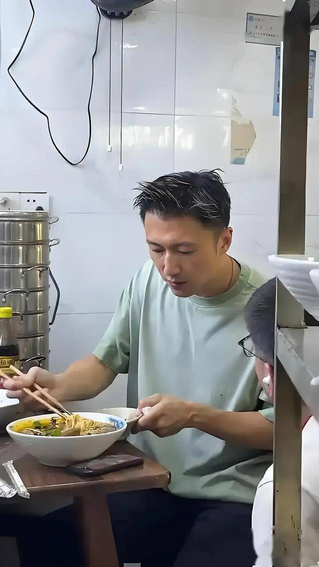 想想也是,多少明星出门恨不得前呼后拥,他却能坐在塑料凳上嗦面,这种反差感真挺难得。