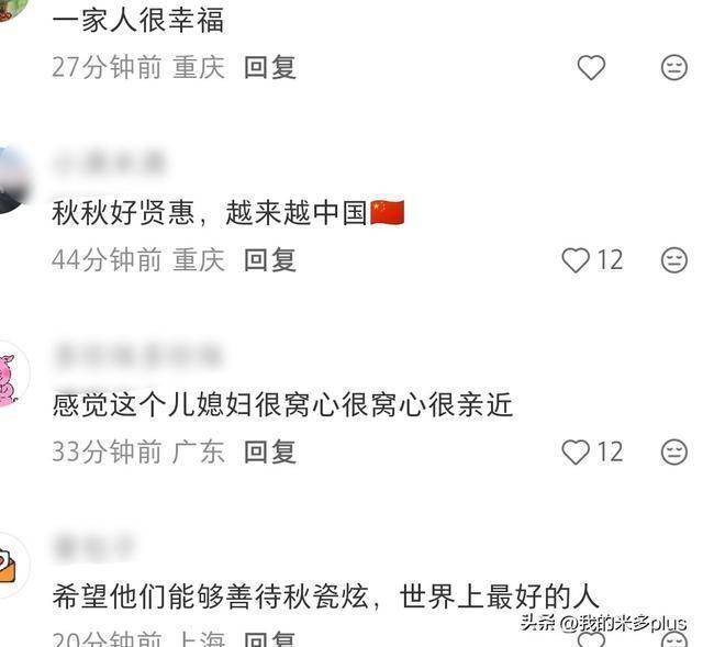 粉丝们直呼秋瓷炫好贤惠,越来越像国内传统的媳妇了,很窝心很平易近人,希望于晓光一家能始终如一好好对待她。