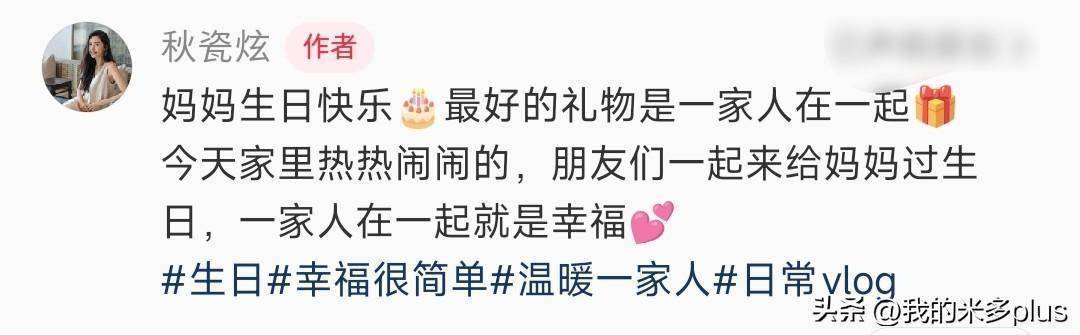 秋瓷炫配文:妈妈生日快乐,最好的礼物就是一家人在一起,亲人在一起就是幸福。
