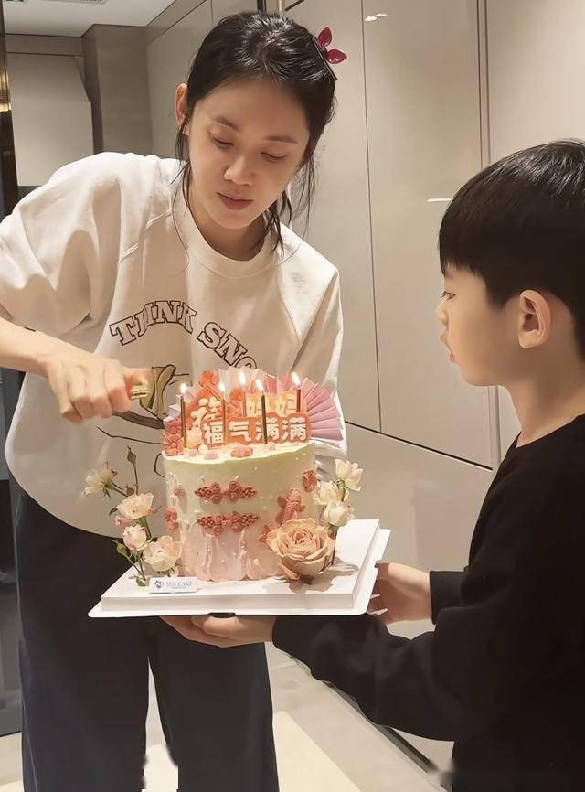 海鲜大餐后面还有蛋糕,款式也是秋瓷炫去挑选的,啪嗒捧着蛋糕,等着妈妈把蜡烛都点好,孩子小心翼翼把蛋糕给奶奶端过去,有妈妈当榜样孝顺老人,孩子自然跟着学会了。