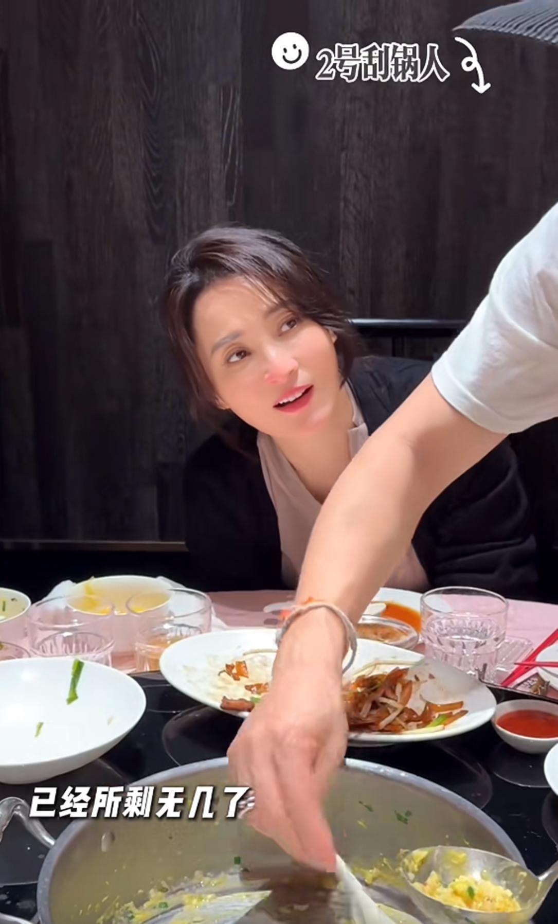 最后锅里剩下的饭还是被坐在蒋勤勤一旁的男员工给刮掉吃完,再看蒋勤勤,对于能将锅底全部吃完的男员工,她歪着头满是羡慕看向他。