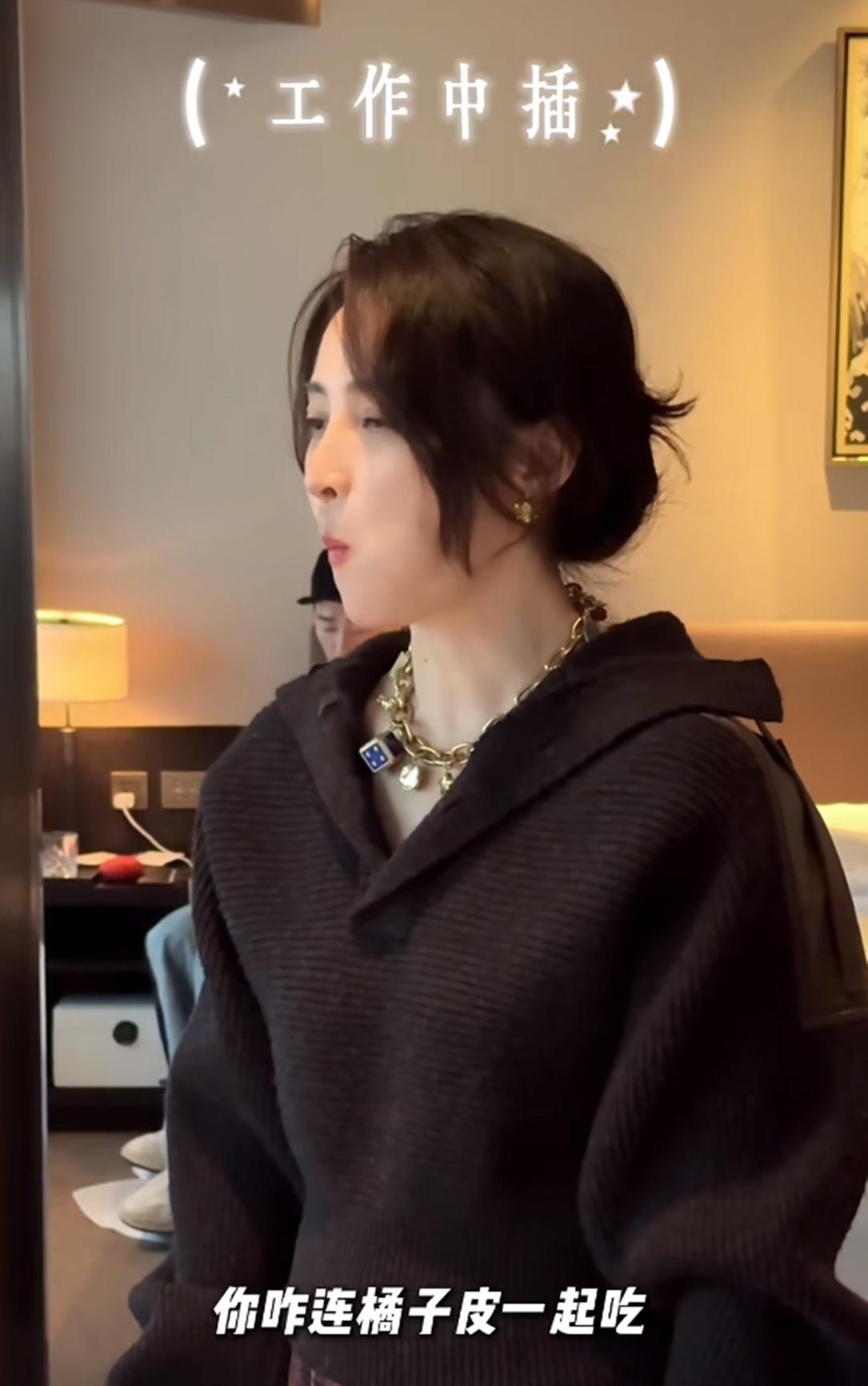蒋勤勤晒工作日常,吃3口碳水就被工作人员警告,饿得带皮吃橘子