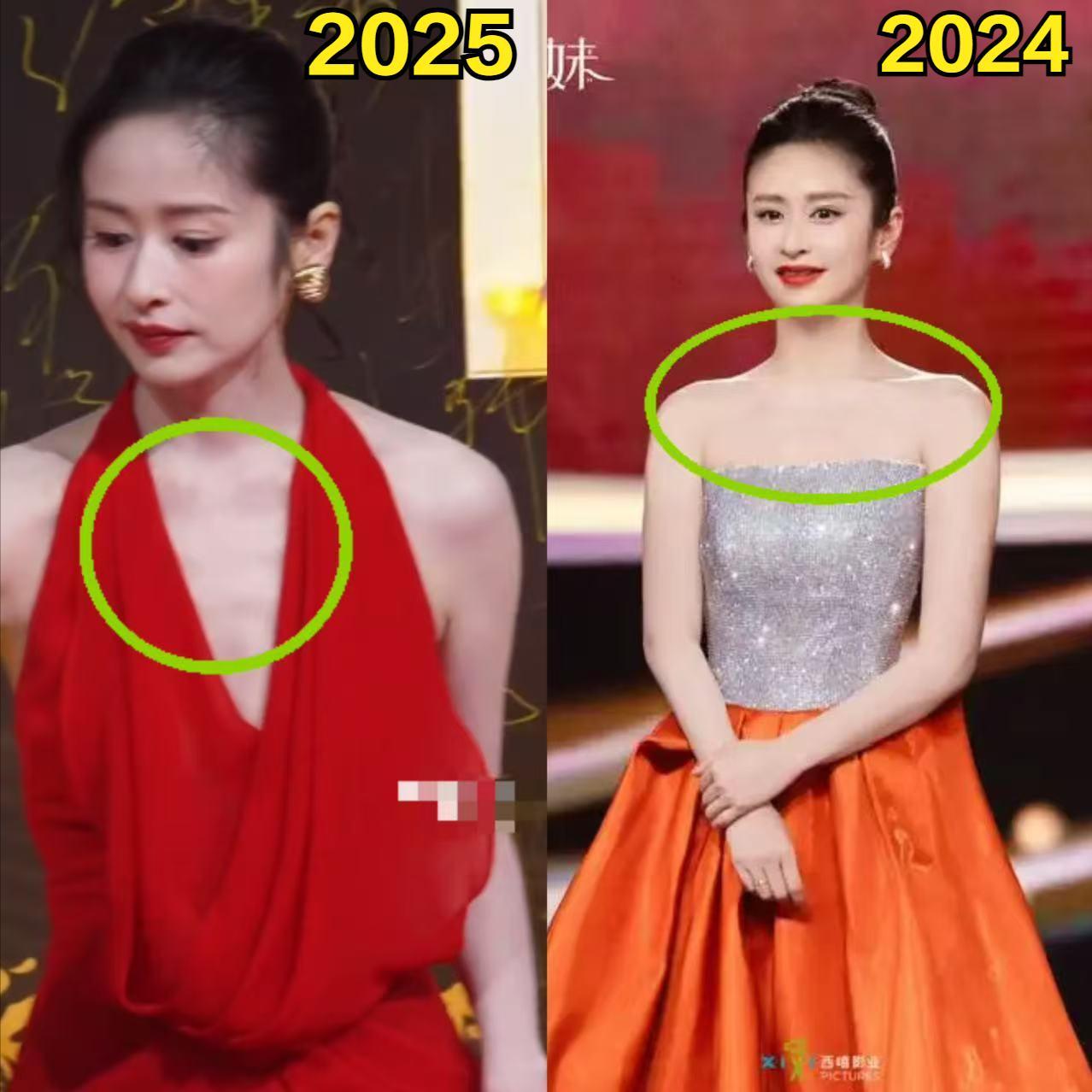 还有佟丽娅,也没有逃脱“瘦脱相”的命运,原本身材还比较丰满圆润的她,在这种畸形审美观念下,已经彻底成为了“平胸”。
