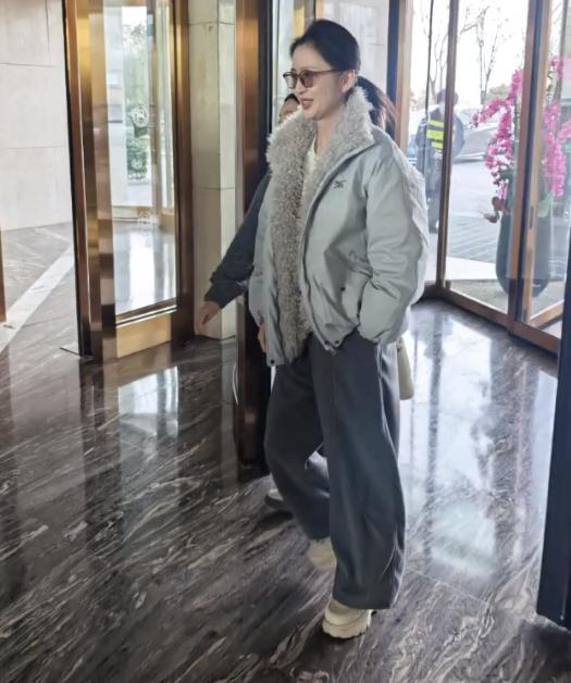 河北偶遇佟丽娅高露聚餐,素颜生图显老又一般,棉袄掉色像旧的