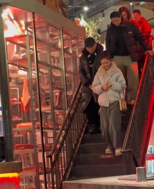 从网友拍摄的画面来看,当时佟丽娅跟朋友刚刚吃完饭从楼上走下来。