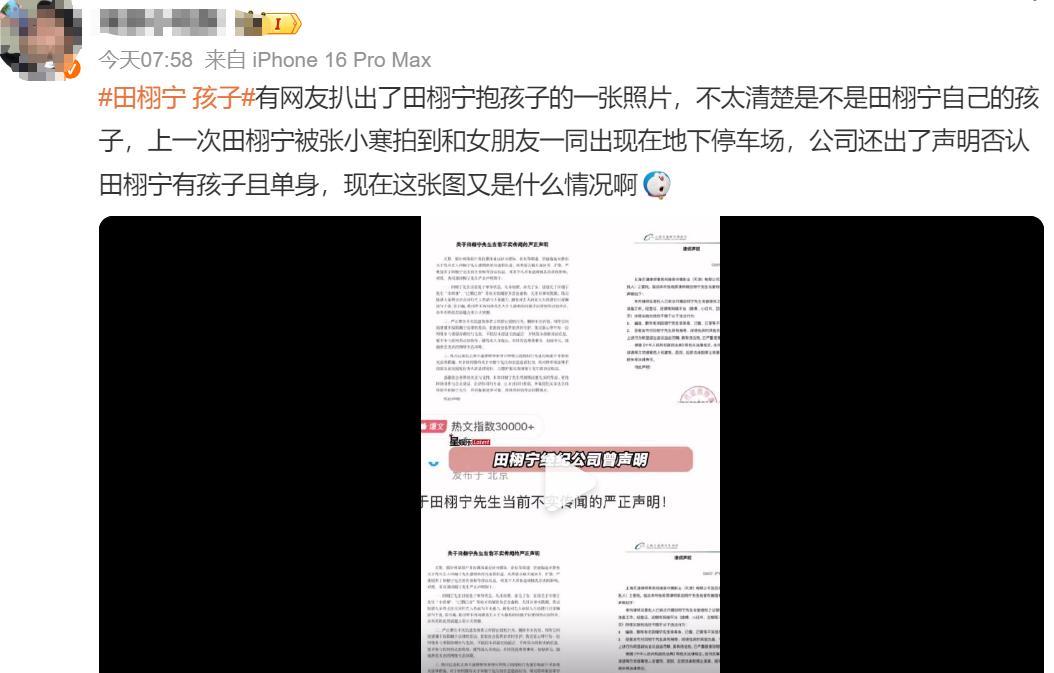 紧接着,今天又被曝出一个大瓜!一位近期火速崛起的新生代顶流男演员田栩宁,再次被爆出有“私生子”的猛料!