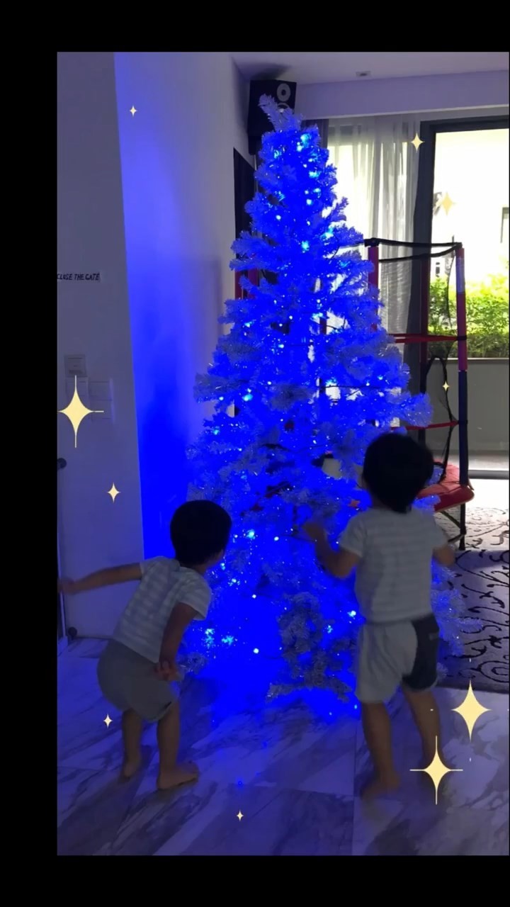 在视频短片中,杨采妮的一对双胞胎儿子成为主角,画面中可见,两兄弟精力充沛,在家中兴奋地跑跳,并合力布置巨大的圣诞树。她充满母爱地感叹:“儿子们从前需要爸爸抱着挂饰品,如今已长高过她的肩膀,能帮忙组装圣诞树,”字里行间流露出对儿子们成长的喜悦,两兄弟时而穿着可爱的企鹅图案T恤,时而手牵手走在户外,显得感情极好,活泼可爱。