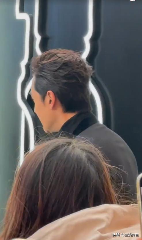 一身黑色西装搭配黑色毛衣,还梳了个大背头,造型看起来正式又低调。
