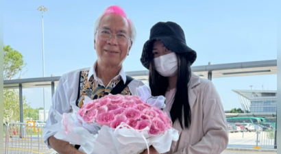 2025-12-29 18:00:3176岁洪金宝和夫人合影,俩人挨着头好恩爱,洪金宝面色红润精神好