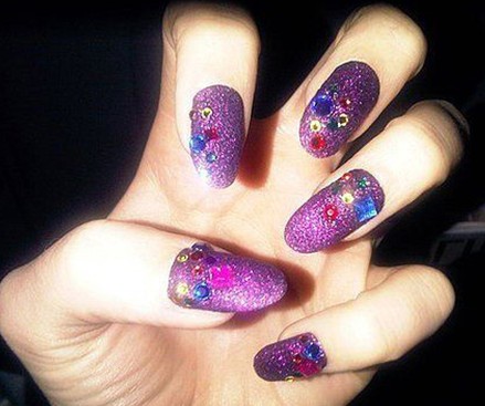 在紫色的基础上添加了不同颜色的小水钻,看起来很俏皮