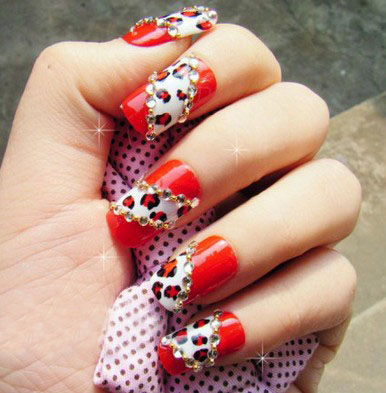 2014的新年,来款亮闪闪的红色豹纹吧,让你性感魅力倍增!鲜红色底色和红色豹纹图案的相互搭配,再来些亮钻的装饰,喜庆中带点性感,魅力锐不可挡!