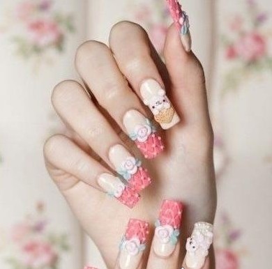 这款方形美甲图片则无处不透着可爱的气息,除了清新淡雅的颜色,还有小熊造型,全是萌系元素,想萌动人心,就选这款吧。