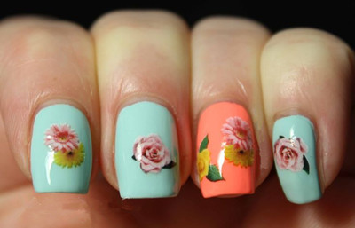 这期的美甲图片带来美美的贴花彩绘甲,逼真的花儿让你可以近距离欣赏她们的美丽。